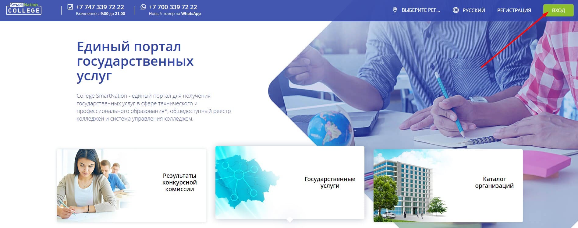 — Выполните авторизацию в системе и откройте основную страницу college.snation.kz